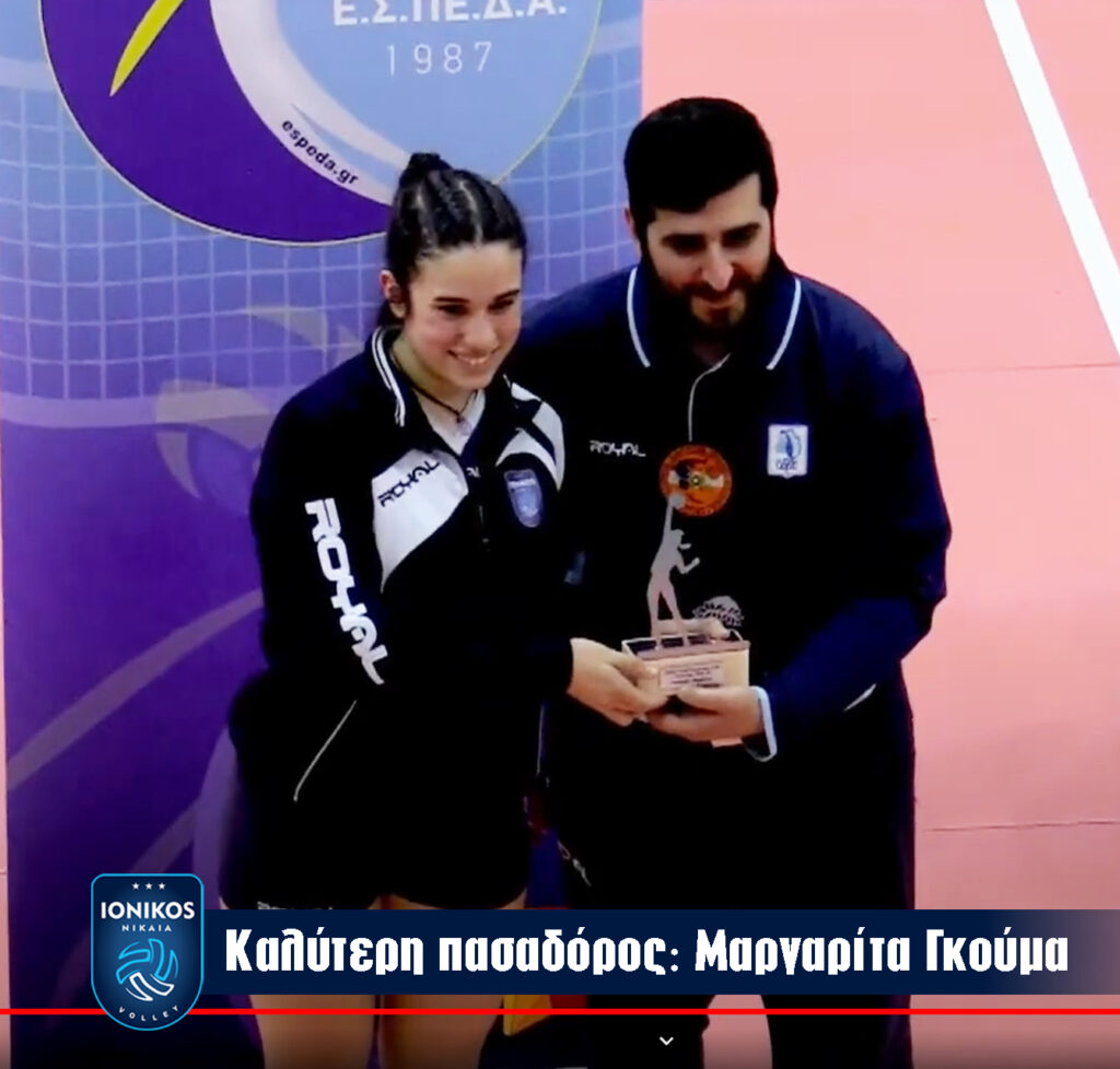 Αξίζουν πολλά μπράβο στις νεαρές αθλήτριες του Ιωνικού και στο προπονητικό team που με το ταλέντο τους αλλά και πολύ δουλειά, μας έκαναν υπερήφανους. Καλύτερη πασαδόρος αναδείχτηκε η αθλήτρια μας Μαργαρίτα Γκούμα.
