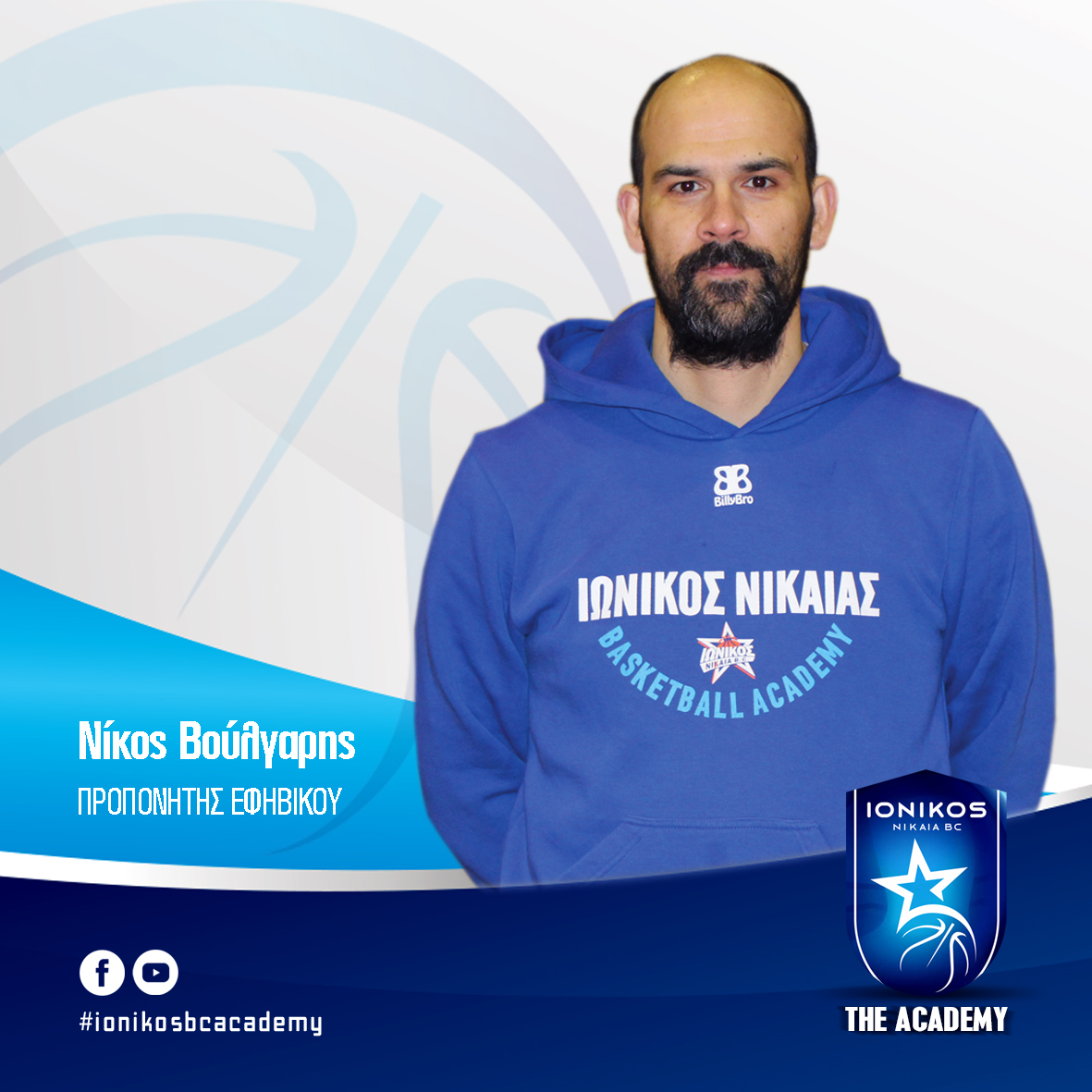 Η Διοικούσα Επιτροπή του Ιωνικού BC Academy, βρίσκεται στην ευχάριστη θέση να ανακοινώσει την επέκταση της συνεργασίας της με τον προπονητή του εφηβικού μας τμήματος Νικόλαου Βούλγαρη. Νίκο σου ευχόμαστε καλή δύναμη, εν όψη της νέας αγωνιστικής περιόδου.