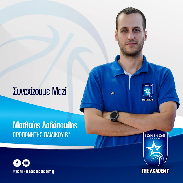 Η Διοικούσα Επιτροπή του Ιωνικού BC Academy, βρίσκεται στην ευχάριστη θέση να ανακοινώσει την επέκταση της συνεργασίας της με τον προπονητή Ματθαίο Λαδόπουλο, όπου και θα αναλάβει το τμήμα το παιδικό Β.