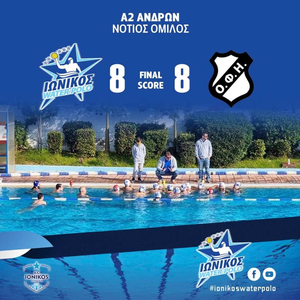 Επιστροφή στη δράση για την Ομάδα του Ιωνικού, παραχωρώντας ισοπαλία 8-8 απέναντι στον ΟΦΗ στο «ουδέτερο» κολυμβητήριο του Χαϊδαρίου.