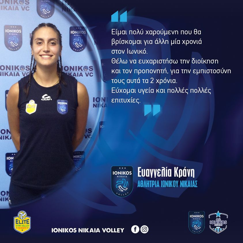 Η κεντρική της γυναικείας ομάδας volley Λίτσα ΚΡΑΝΗ μετά από την εξαιρετική περσινή αγωνιστική χρονιά, θα βρίσκεται εκ νέου στις αγωνιστικές επάλξεις και την προσπάθεια της γυναικείας ομάδας του Ιωνικού Νίκαιας τη νέα αθλητική περίοδο.