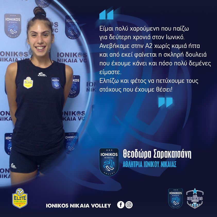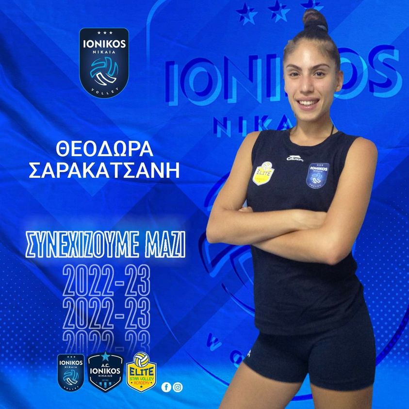Η ακραια της γυναικείας ομάδας volley Θεοδωρα Σαρακατσανη μετά από την εξαιρετική περσινή αγωνιστική χρονιά, θα βρίσκεται εκ νέου στις αγωνιστικές επάλξεις και την προσπάθεια της γυναικείας ομάδας του Ιωνικού Νίκαιας τη νέα αθλητική περίοδο.