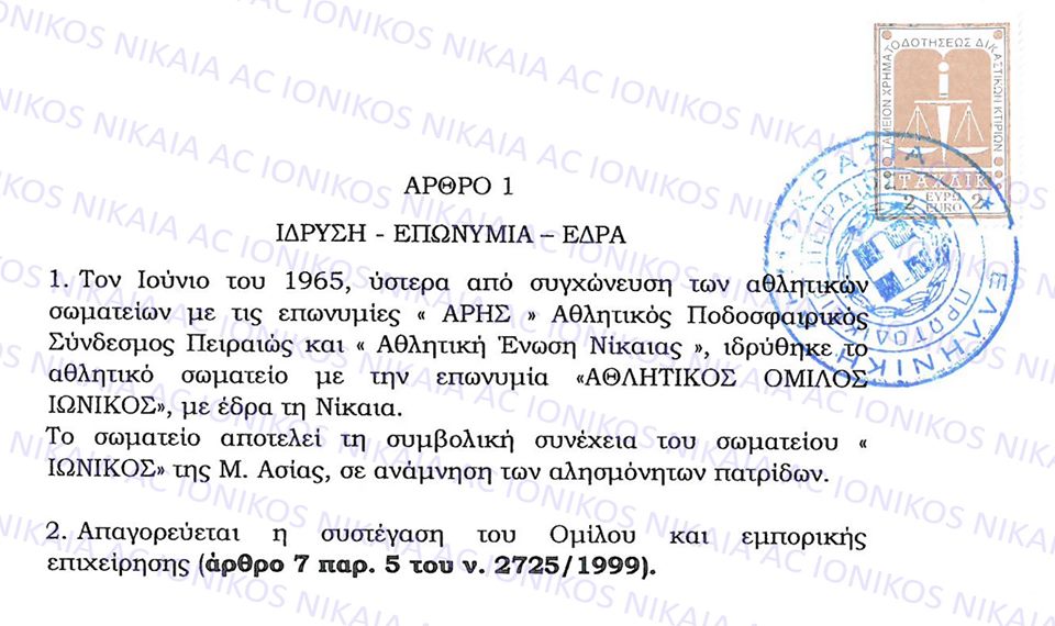 Ο Ερασιτέχνης Ιωνικός βρίσκεται στην ευχάριστη θέση να ανακοινώσει στον φίλαθλο κόσμο την ολοκλήρωση τροποποίησης καταστατικού του σωματείου.