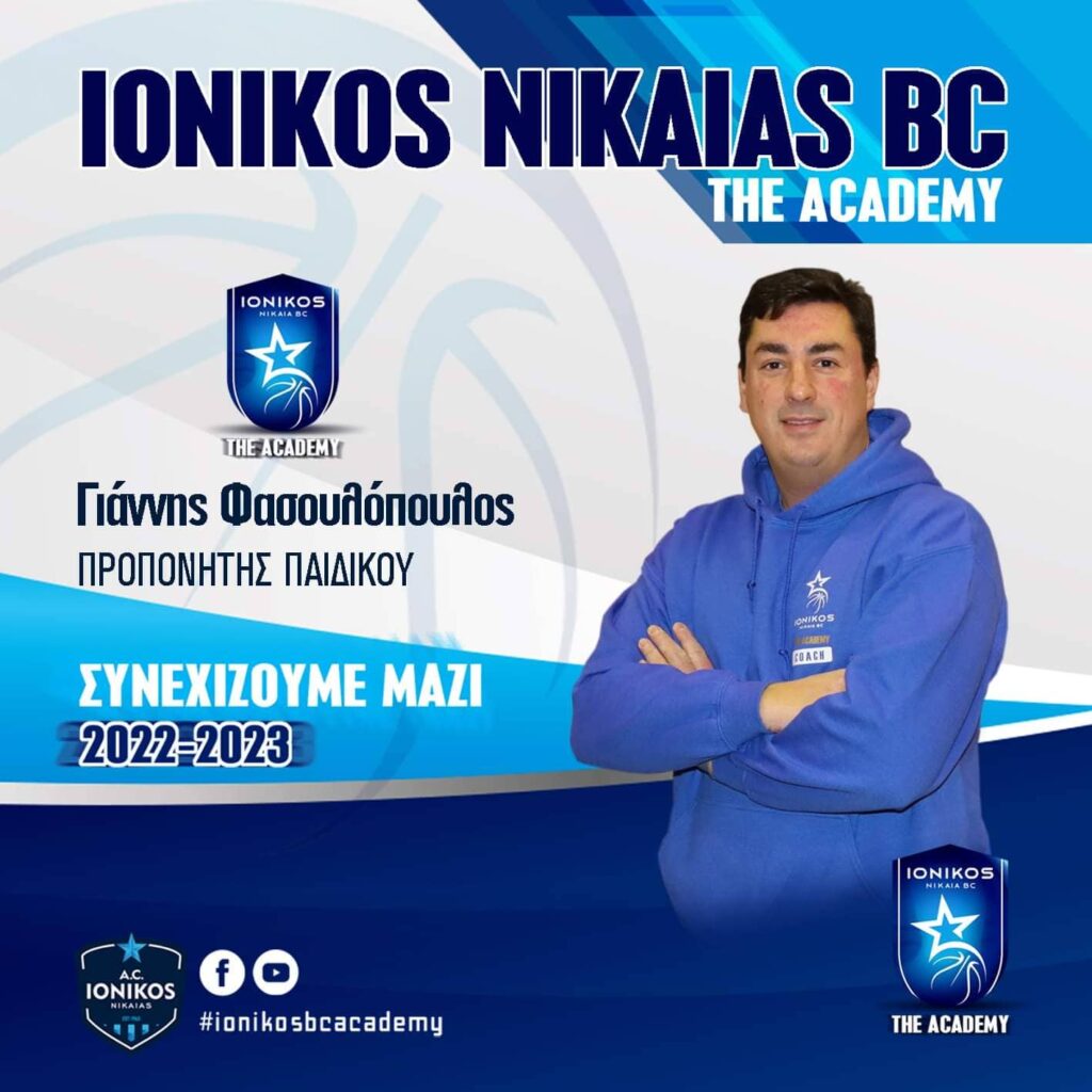 Ο Ερασιτέχνης Ιωνικός βρίσκεται στην ευχάριστη θέση να ανακοινώσει την επέκταση της συνεργασίας του με τον προπονητή του παιδικού τμήματος Γιάννη Φασουλόπουλο. Ο Γιάννης βρίσκεται στην Ακαδημία μπάσκετ του συλλόγου μας τα τελευταία χρόνια έχοντας συμβάλει σημαντικά στην εξέλιξη των αθλητών μας και η πρόθεση της Διοίκησης για την παραμονή του ήταν ξεκάθαρη.