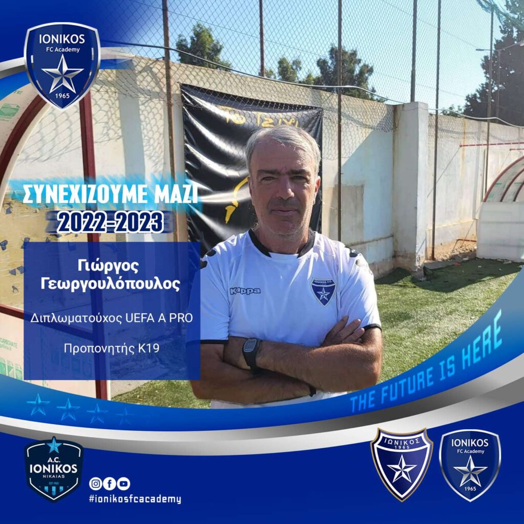 Η διοίκηση ακαδημιών του Ιωνικού Νικαίας, ανακοινώνει την ανανέωση της συνεργασίας της με τον προπονητή της Κ19 superleage 1, ΓΕΩΡΓΟΥΛΟΠΟΥΛΟ ΓΙΩΡΓΟ , διπλωματούχο UEFA A Pro