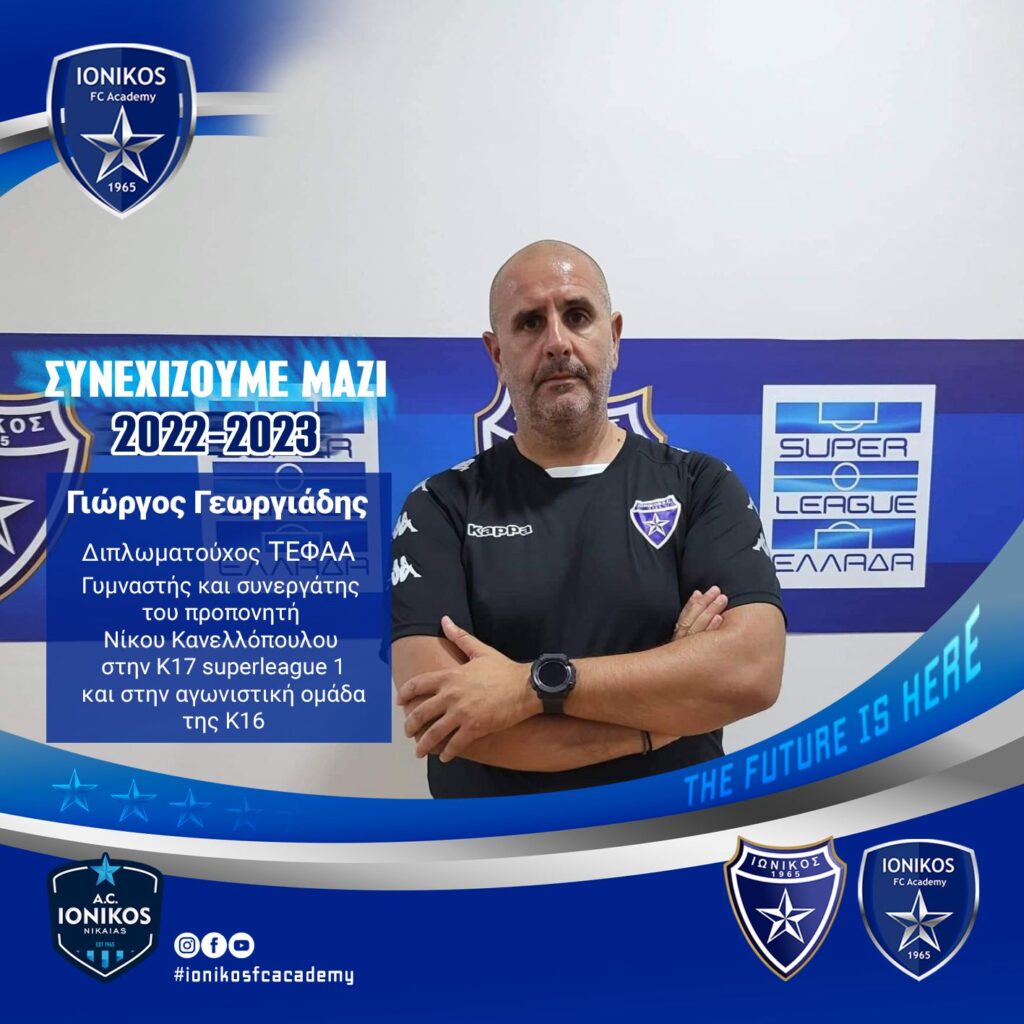 Η διοίκηση των ακαδημιών του Ιωνικού Νικαίας, ανανεώνει την συνεργασία της με τον Γυμναστή της ομάδας της Κ17 (Superleage 1) και της Κ16, Γεωργιάδης Γιώργο, καί του εύχεται καλή επιτυχία στο δύσκολο αυτό έργο που έχει αναλάβει!