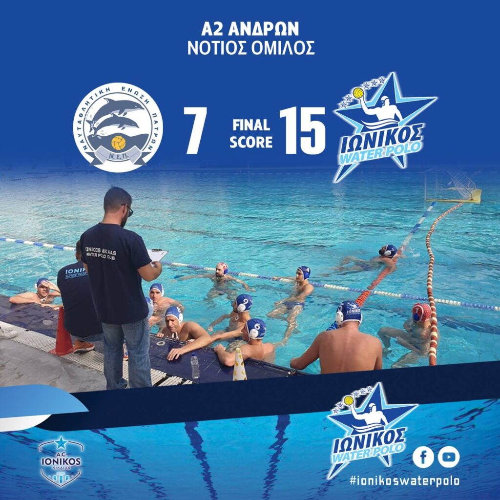 ΝΕ ΠΑΤΡΩΝ – ΙΩΝΙΚΟΣ 7-15. Οκτάλεπτα: 4-4, 0-2, 2-6, 1-3. Σκόρερ: ΝΕ Πατρών: Κανελλόπουλος 2, Κοντονής 1, Τουλγαρίδης 3, Σπανογιάννης 1. Ιωνικός: Γέμελος 1, Μακαντάνης Ι. 3, Αμπατζόγλου 3, Πρωτοψάλτης 3, Κουτσαντάς 1, Ψιρογιάννης 2, Κολλάρος 1, Λαδάς 1.