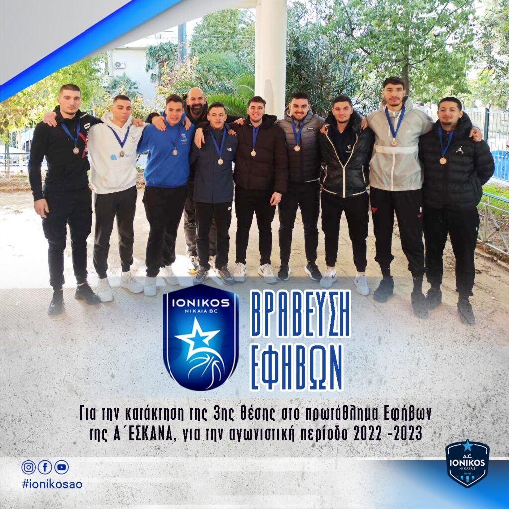 Απονομή επαίνων στους αθλητές του Εφηβικού τμήματος για την κατάκτηση της 3ης θέσης στο πρωτάθλημα Εφήβων της Α΄ΕΣΚΑΝΑ, την αγωνιστική περίοδο 2022 -2023