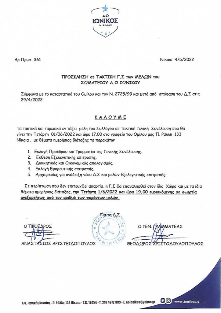Εκλογές την 1η Ιουνίου στον Ερασιτέχνη