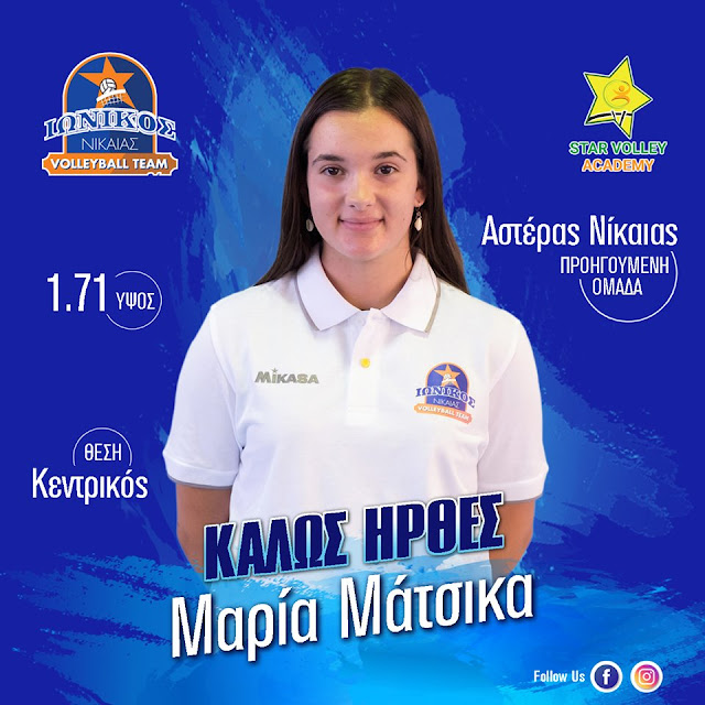 Ο Ιωνικός Νικαίας Volleyball ανακοινώνει την έναρξη της συνεργασίας του με την αθλήτρια Μαρία Μάτσικα. Μαρία καλώς ήρθες στην οικογένεια του Ιωνικού Νίκαιας.