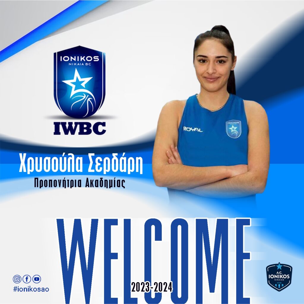 Το γυναικείο τμήμα μπάσκετ του Α.Ο. Ιωνικού Νίκαιας Είναι στην ευχάριστη θέση να ανακοινώσει την έναρξη συνεργασίας με τη Χρυσούλα Σερδάρη, η οποία είναι αθλήτρια στο γυναικείο μας τμήμα και τη νέα σεζόν θα αναλάβει το τμήμα της Ακαδημίας μας !