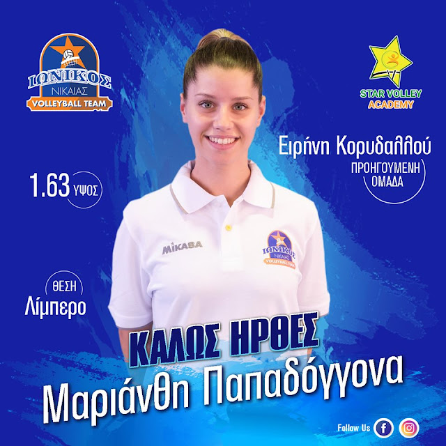 Ο Ιωνικός Νικαίας Volleyball ανακοινώνει την έναρξη της συνεργασίας του με την αθλήτρια Μαριάνθη Παπαδόγγονα.