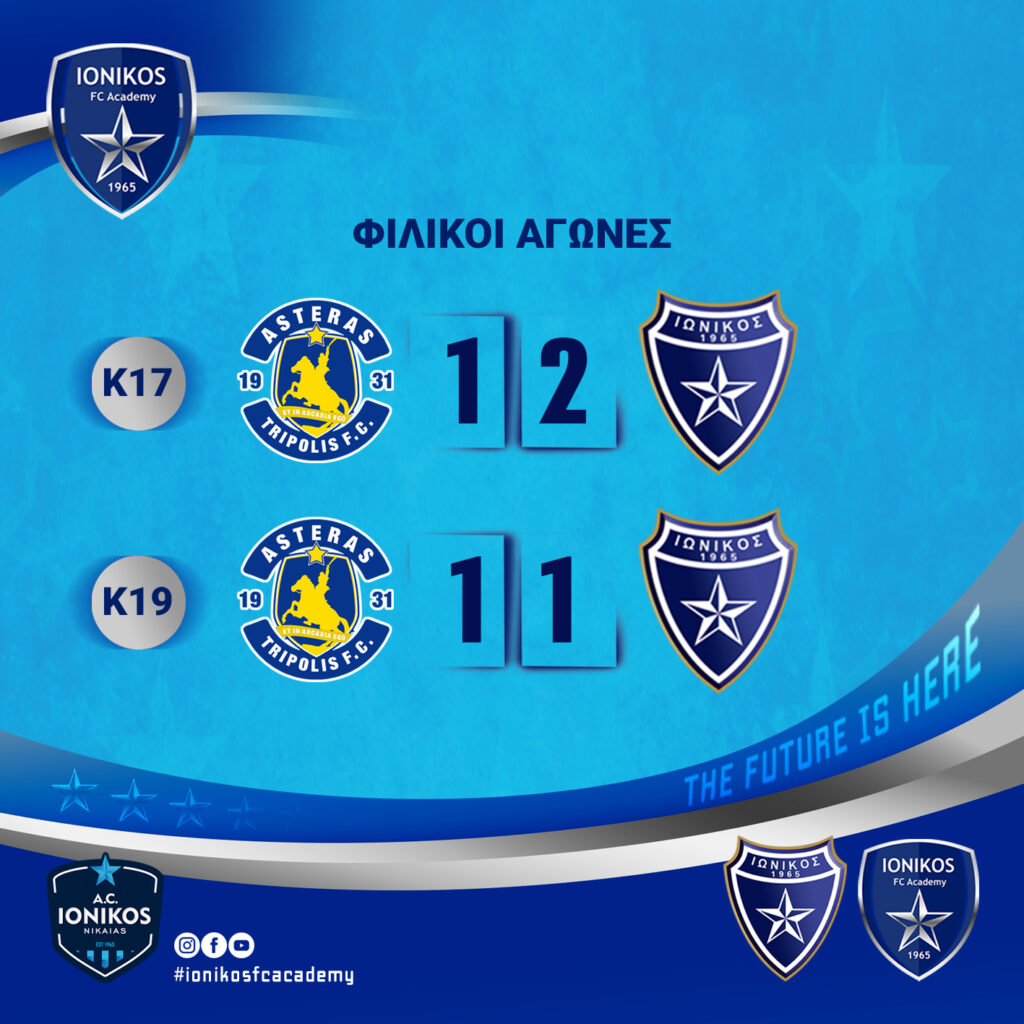 Σε φιλικό αγώνα μεταξύ τών ομάδων της Κ17 της Superleague 1 Αστέρας Τρίπολης – Ιωνικός Νίκαιας η ομάδα τής Νίκαιας επικράτησε με το εκτός έδρας σκορ 1-2 παίζοντας πολύ καλό ποδόσφαιρο, αφού η ομάδα ακόμα βρίσκεστε στην 4η εβδομάδα προετοιμασία της. Αγωνίστηκαν όλα τα παιδιά υπερβάλλοντας εαυτό και δείχνοντας υπερβολικό ζήλο.