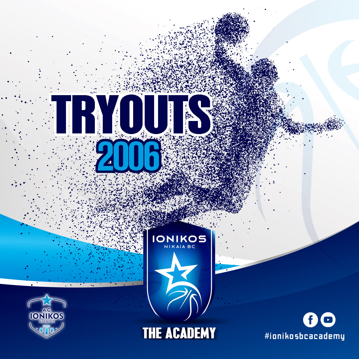 Η Ακαδημία του Ιωνικού BC Academy ανακοινώνει τη διεξαγωγή ανοικτών προπονήσεων (try-outs) για την κάλυψη θέσεων για αθλητές γεννημένους το 2006. Όλες οι προπονήσεις θα γίνουν στο κλειστό του Πλάτωνα. Το πρόγραμμα της εβδομάδας είναι : Τρίτη 18:30-19:30, Τετάρτη 19:30-20:30, Πέμπτη 19:30-20:30. Για περισσότερες πληροφορίες επικοινωνήστε: Αντώνης Χατζηκυριάκος 6947209911. #ionikosbc #theacademy #TheFutureBeginsHere