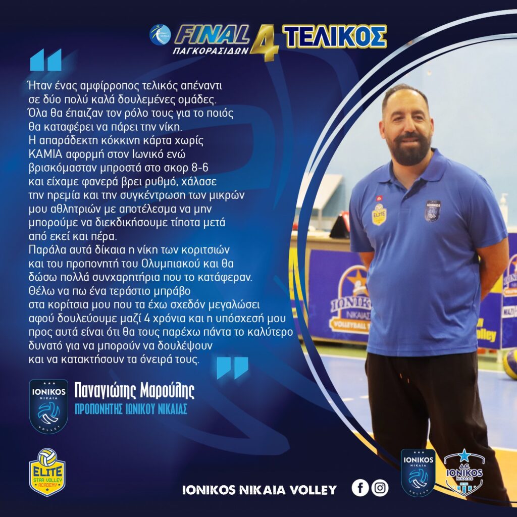 Η δήλωση του προπονητή μας Παναγιώτη Μαρούλη για τον τελικό αλλά και την επιτυχία της 2ης θέσης των Παγκορασίδων!