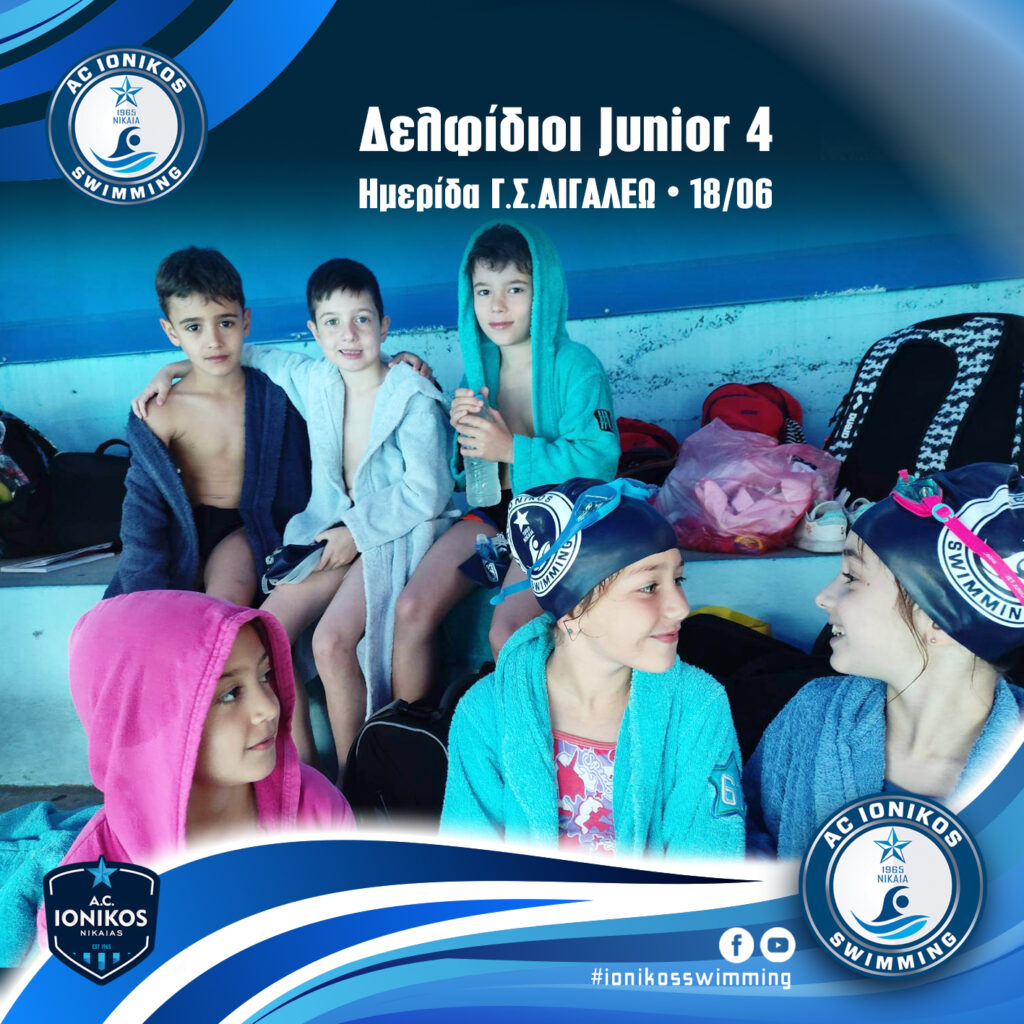 Την Κυριακή 18 Ιουνίου η ομάδα μας συμμετείχε στην ημερίδα του Γ.Σ. ΑΙΓΑΛΕΩ “Δελφίδιοι junior 4” για ηλικίες 6,7,8 ετών που έγινε στο κολυμβητήριο του ΑΙΓΑΛΕΟΥ με 6 μικρούς αθλητές.