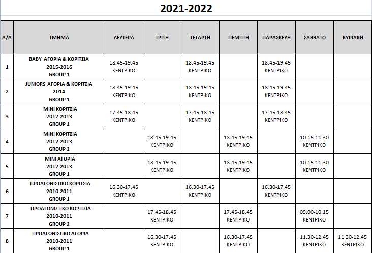 Παράλληλα, από σήμερα ξεκινούν οι προπονήσεις των αγωνιστικών τμημάτων και από τη Δευτέρα 06/09 θα ξεκινήσουν και οι προπονήσεις όλων των τμημάτων της Ακαδημίας.