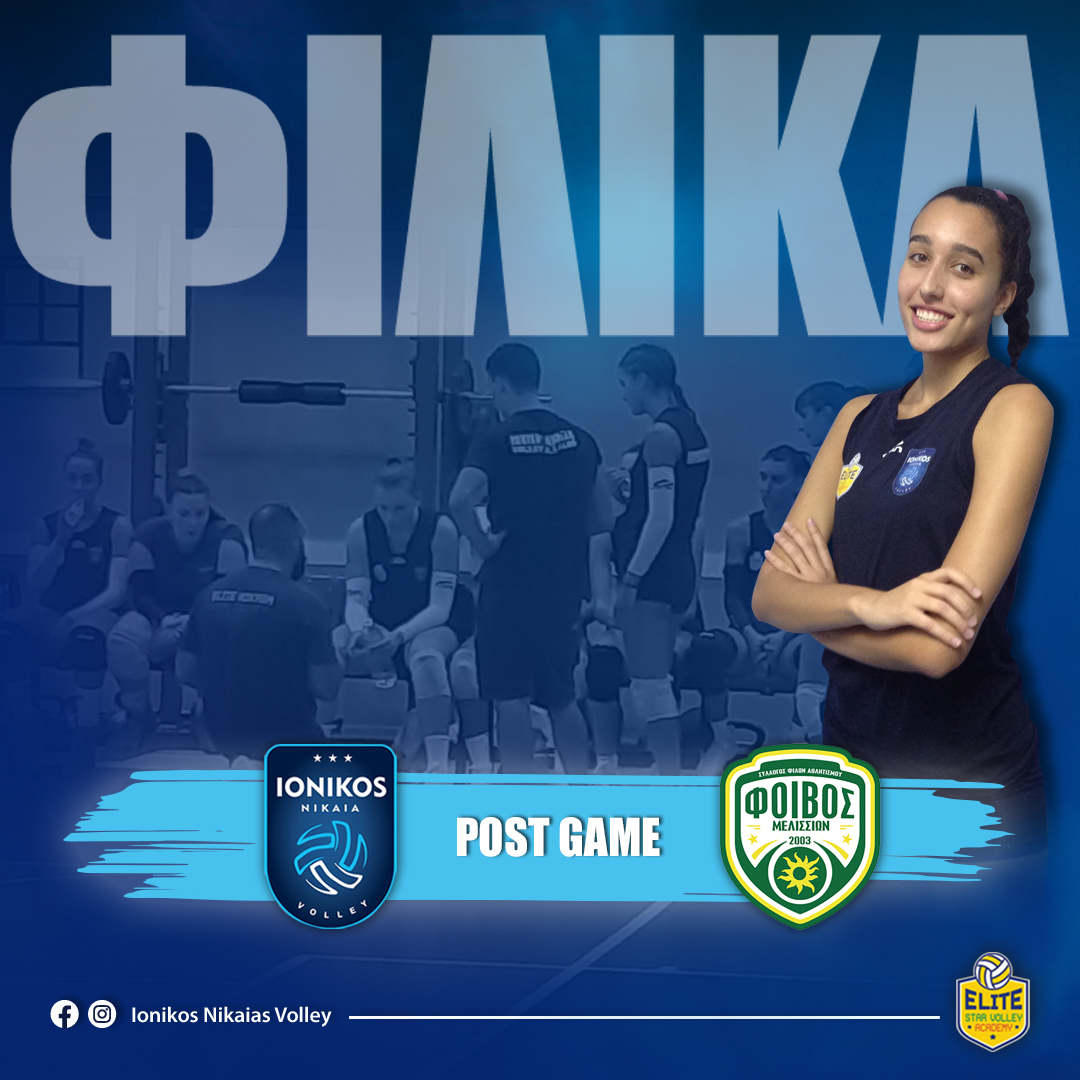 Ένα πολύ ανταγωνιστικό παιχνίδι ανάμεσα σε δύο ομάδες με κοινούς στόχους, είχαν την ευκαιρία να παρακολουθήσουν όσοι βρέθηκαν την Κυριακή (19/9) βράδυ στο NIKAIA VOLLEY CENTER. Η ομάδα μας παρότι παρουσιάστηκε κουρασμένη από τις συνεχόμενες προπονήσεις και φιλικούς αγώνες, εν τούτης με τεράστια ψυχικά αποθέματα και την καίρια καθοδήγηση του προπονητή μας Παναγιώτη Μαρούλη κατάφερε, για μια ακόμα φορά, να φτάσει στη νίκη με 3-1 σετ (25-22,26-24,22-25,25-21) απέναντι στον Φοίβο Μελισσίων.