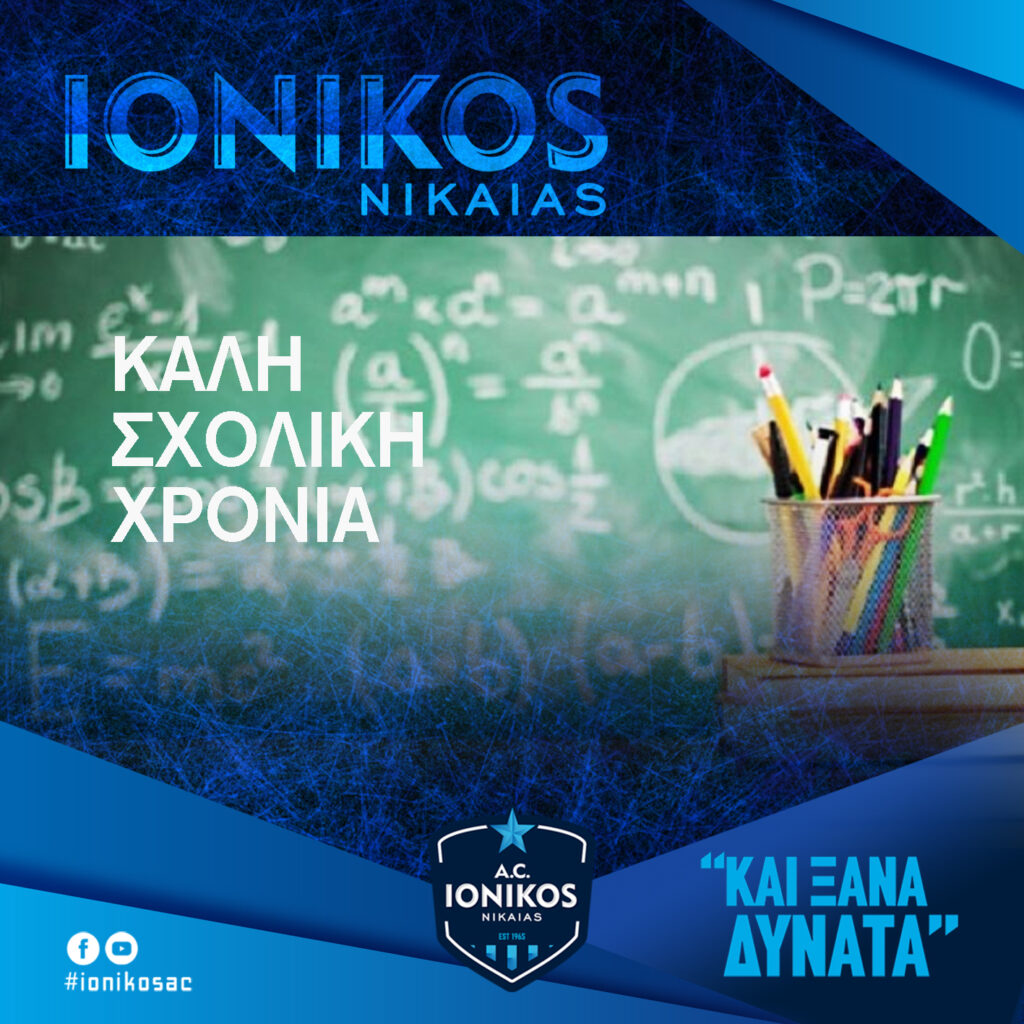 Ο Α.Ο Ιωνικός , η διοίκηση και οι προπονητές των τμημάτων εύχονται στους μαθητές αθλητές του Συλλόγου Καλή Σχολική Χρονιά.
