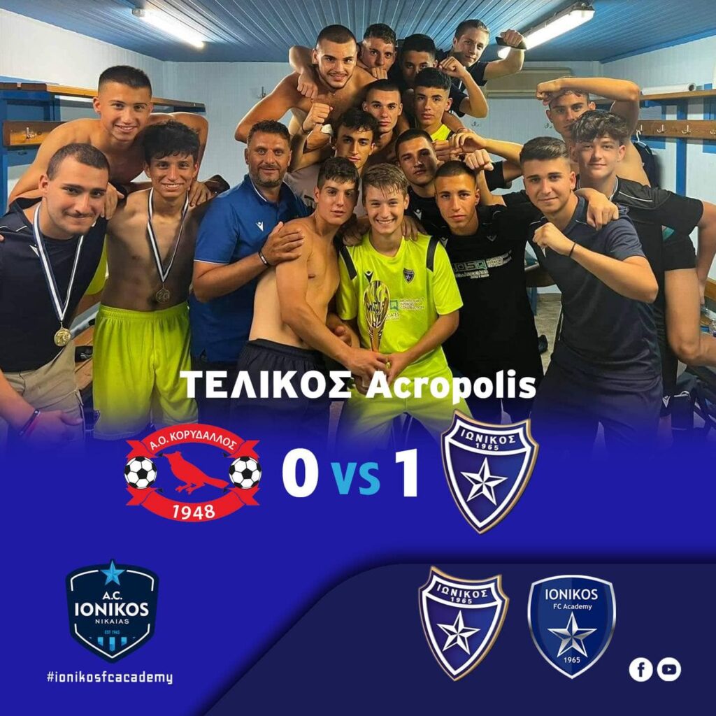 Θέλω να δώσω για άλλη μια φορά στα παιδιά που συνεργάζομαι φέτος (Κ17)πολλά συγχαρητήρια γιατί εκτός που πήρανε το πρωτάθλημα της Ενωσής Πειραιά έπαιξαν άλλο ένα τελικό για το τουρνουά Acropolis με αντίπαλο την ομάδα του Α.Ο. Κορυδαλλού κερδίζοντας 1-0 το γκολ το έβαλα ο ΓΙΑΝΝΗΣ ΚΑΤΣΙΦΗΣ. Στης 26-27-28-29 Ιουνίου η ομάδας μας θα συμμετέχει σε ένα τουρνουά στην Καλαμάτα με πολύ καλές ομάδες.