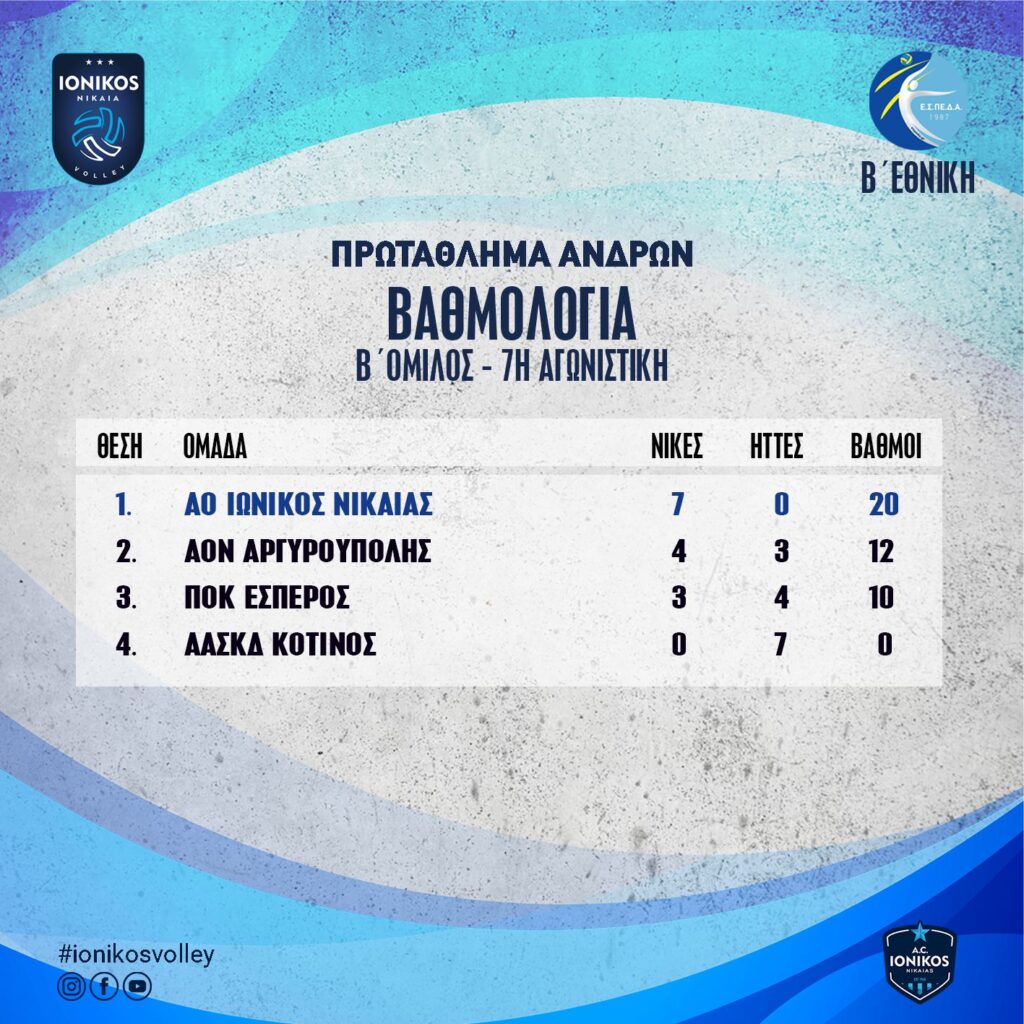 Με νίκη ξεκίνησε το νέο έτος για τους Άνδρες του Ιωνικού, αφού κατάφεραν να επικρατήσουν επί της μαχητικής ομάδας της Καλλιθέας μετά από 5 σετ. Η ομάδα μας παραμένει στην κορυφή της βαθμολογίας.