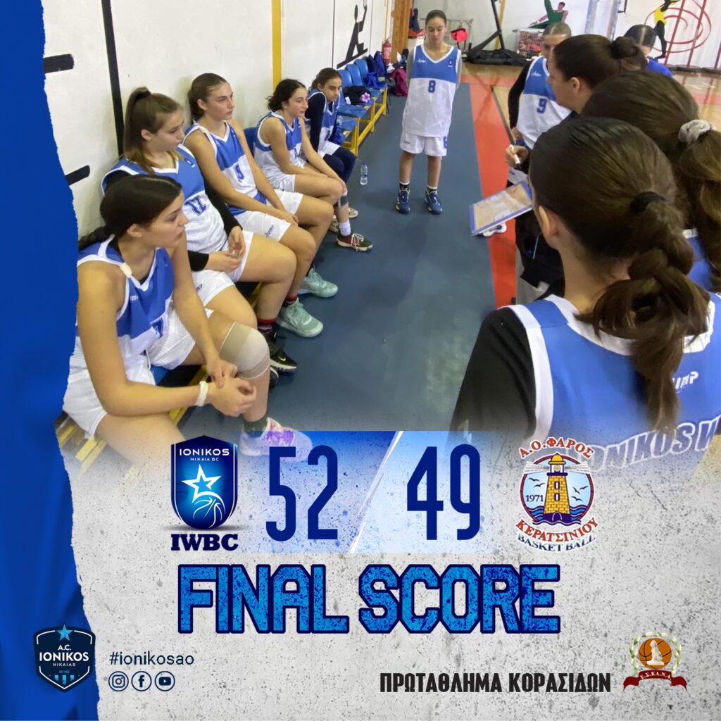 14:45 Στο κλειστό γυμναστήριο Καραμπίνη, κέρδισαν στην παράταση την ομάδα του Φάρου Κερατσινίου με σκορ 52-49. Σκορ κανονικού αγώνα (44-44). Αποφασισμένες για τη νίκη από την αρχή του αγώνα δεν τα παράτησαν λεπτό κ το αποτέλεσμα τις δικαιώνει !