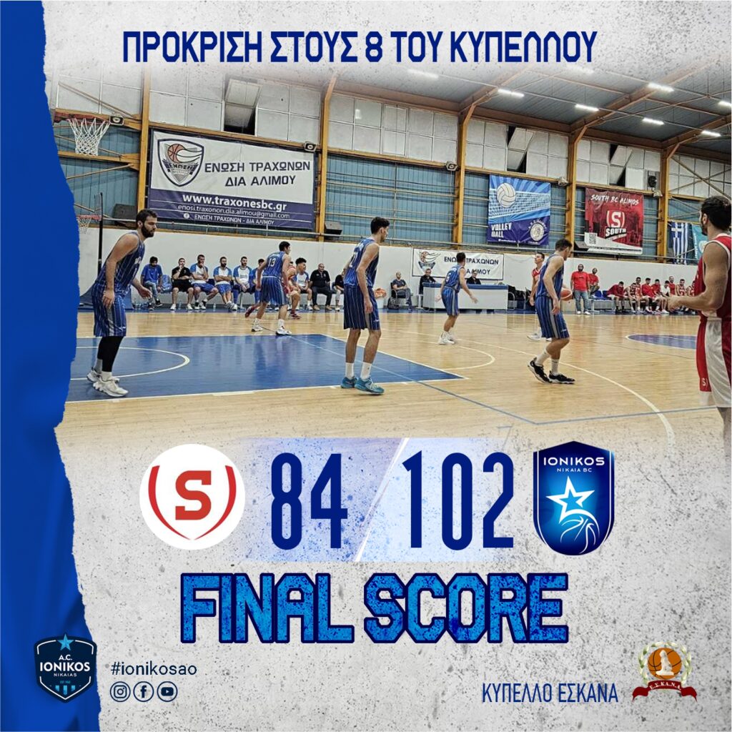 Με σκορ 84-102 επιβλήθηκε ο Ιωνικός των Νοτίων Αλίμου. Η ομάδα μας έδωσε χρονο στο μεγαλύτερο μέρος του αγώνα και σε νεαρούς αθλητές.