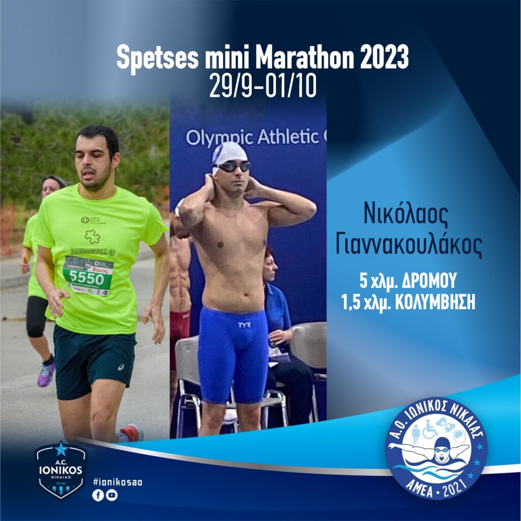 Ο αθλητής του ΙΩΝΙΚΟΥ ΝΙΚΑΙΑΣ ΑΜΕΑ Νικόλαος Γιαννακουλάκος θα συμμετάσχει στο φετινό Spetses mini Marathon 2023 στον αγώνα δρόμου 5 χιλιομέτρων και στον κολυμβητικό αγώνα 1,5 χιλιομέτρου. Ευχόμαστε καλή επιτυχία.