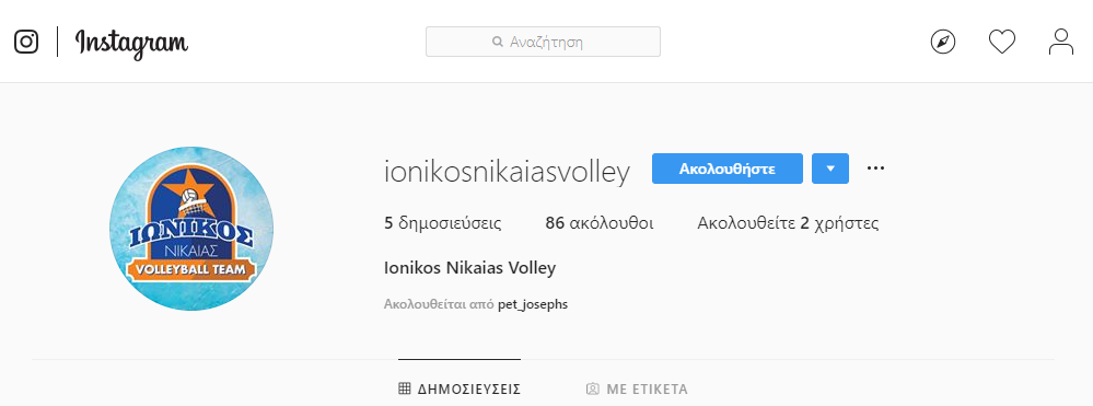 Μετά τη λειτουργία της επίσημης σελίδας του τμήματος volley του Ιωνικού Νίκαιας στο Facebook, ένας άλλος λογαριασμός δημιουργήθηκε στο μέσο κοινωνικής δικτύωσης Instagram για την καλύτερη και ποιοτικότερη επικοινωνία των φίλων του volley του ιστορικού σωματείου.