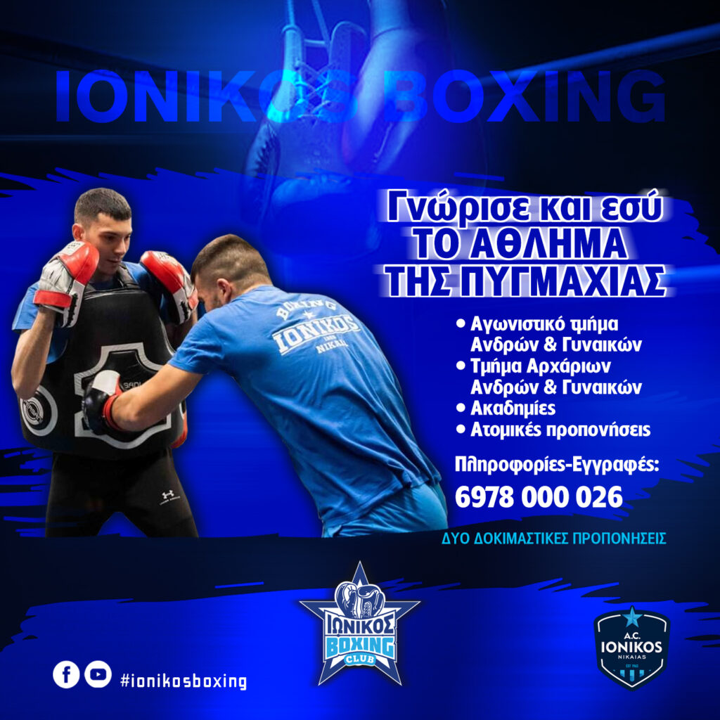 Oι εγγραφές στο πυγμαχικό τμήμα του Α.Ο ΙΩΝΙΚΟΥ ξεκίνησαν.
