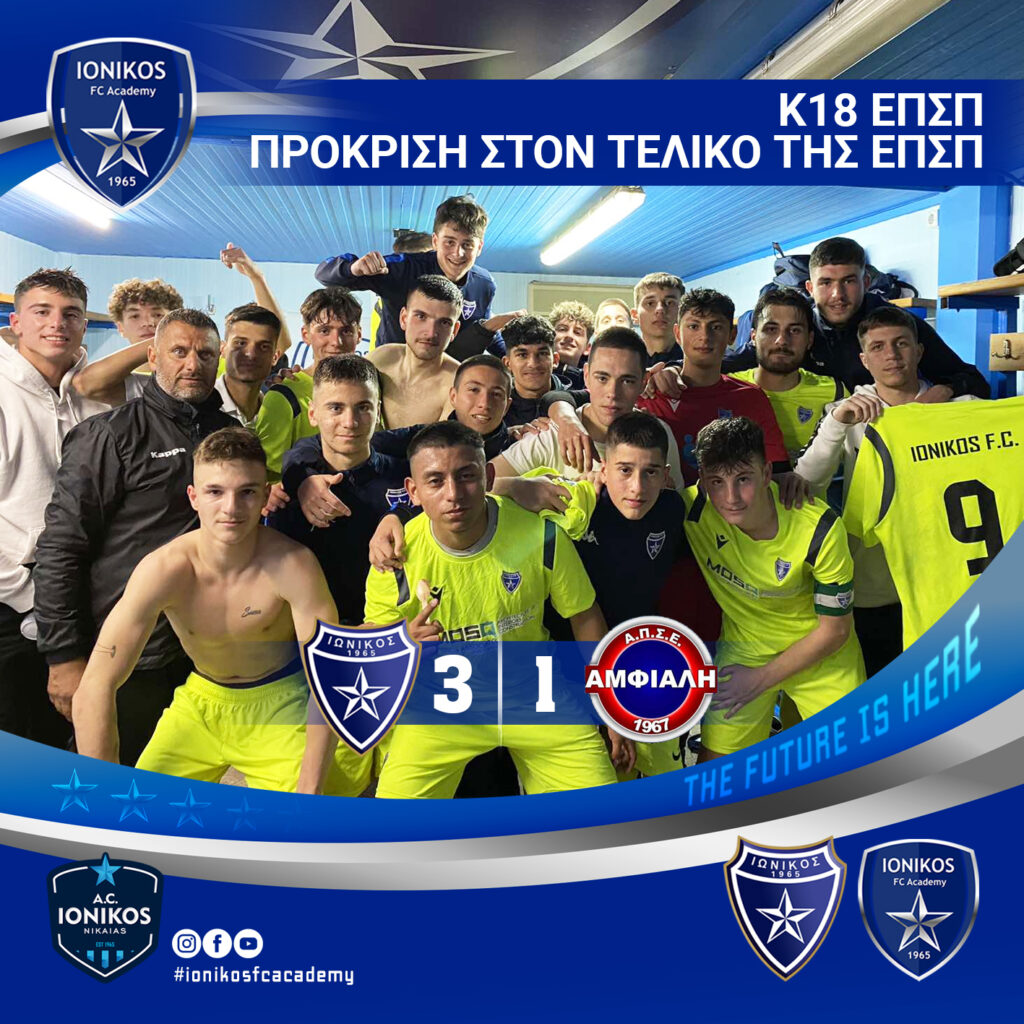 Άλλο ένα Τμήμα της Ακαδημίας του ποδοσφαιρικού Ιωνικού που διαπρέπει τα τελευταία χρόνια! Πιάνοντας την απόδοση που χρειαζόταν η ομάδα προκρίθηκε στον Τελικό της ΕΠΣΠ.