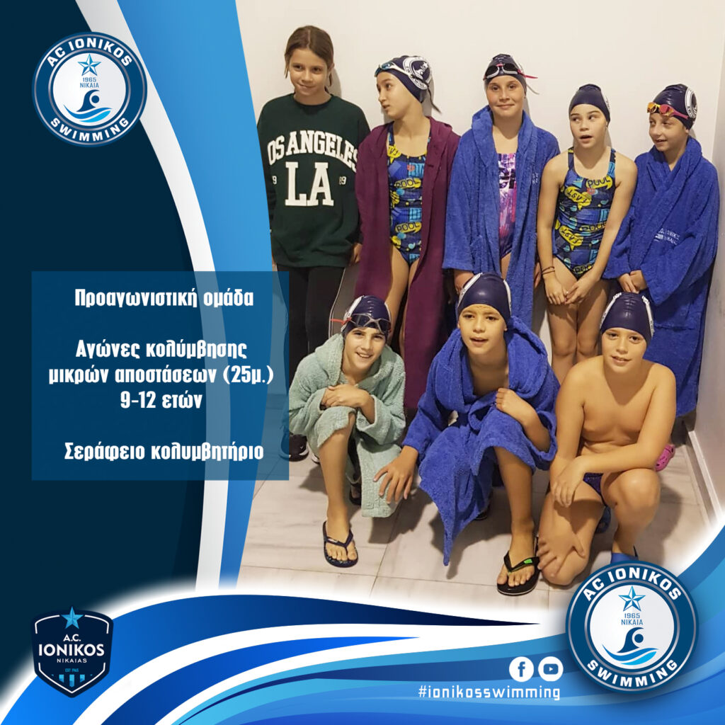 Η προαγωνιστική ομάδα του Ιωνικού Νίκαιας συμμετείχε στους αγώνες κολύμβησης μικρών αποστάσεων (25μ.) στις ηλικίες 9-12 ετών που έγιναν στο Σεράφειο κολυμβητήριο. Οι μικροί μας κολυμβητές είχαν εξαιρετική παρουσία με πολύ καλούς χρόνους.