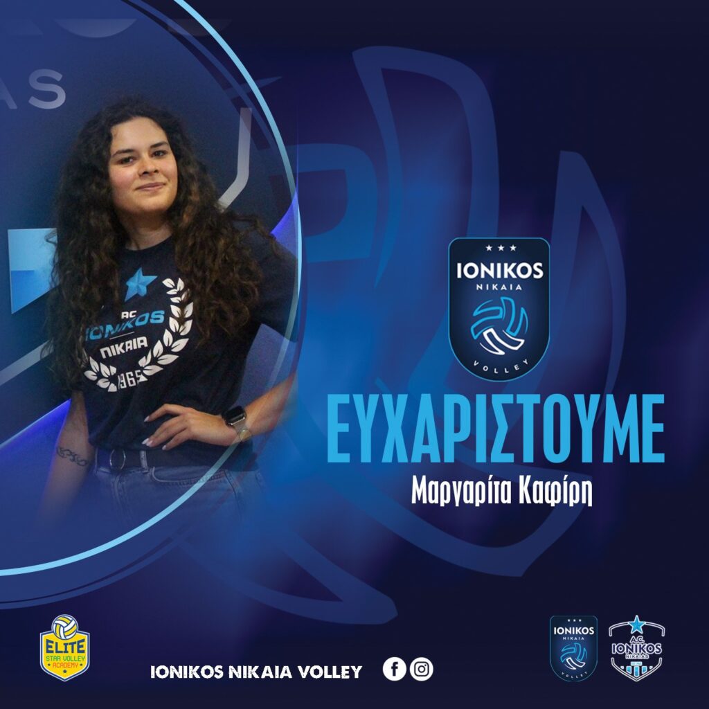 Θερμές ευχαριστίες στη Μαργαρίτα ΚΑΦΙΡΗ η οποία συνεισέφερε σημαντικά στη φετινή πορεία των επιτυχιών και ανόδου του Ιωνικού Νίκαιας.