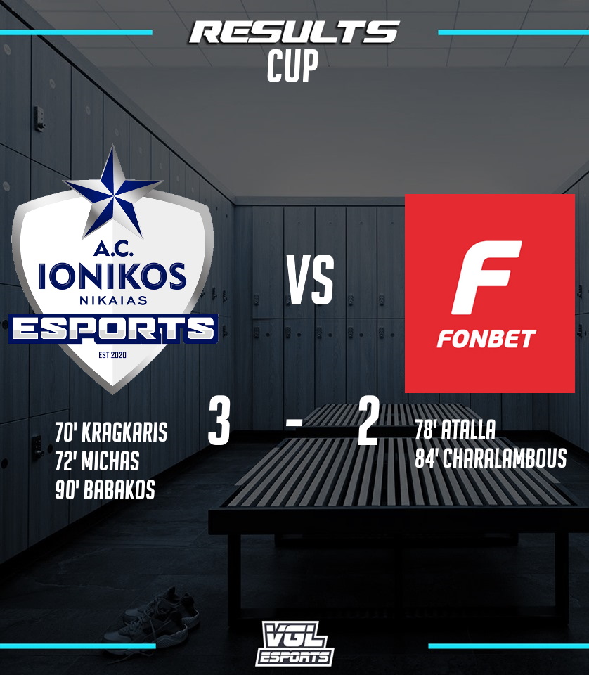 Στα δυο παιχνίδια κυπέλλου που έδωσε εχθές η ομάδα μας,καταφέραμε να αποσπάσουμε μια νίκη και μια ισοπαλία φέρνοντας μας στην 2η θέση των ομίλων του κυπέλλου VGL e-Sports .