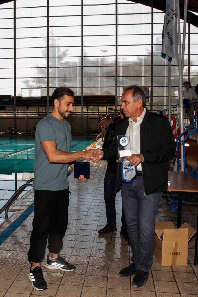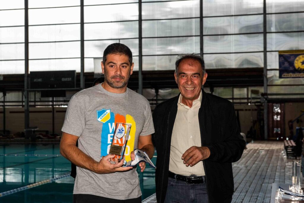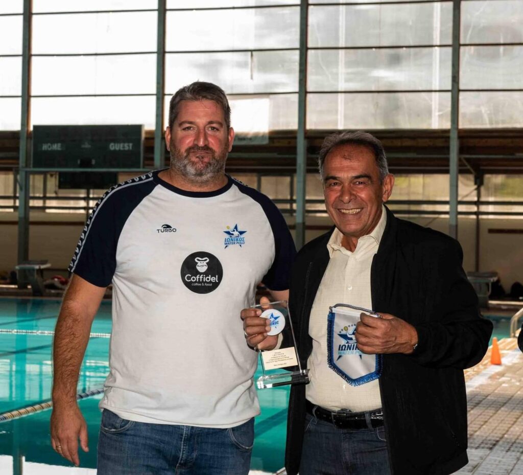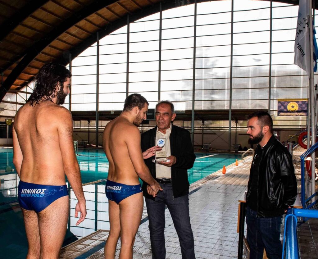 Ο κ. Ιωακειμίδης βραβεύτηκε από τον Υπεύθυνο και αρχιπροπονητή του τμήματος κ. Αρσένη Μαρούλη για την συνολική προσφορά του όλα αυτά τα χρόνια τόσο στο Πόλο του Ιωνικού όσο και στον αθλητισμό της Νίκαιας γενικότερα.